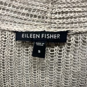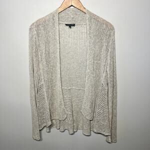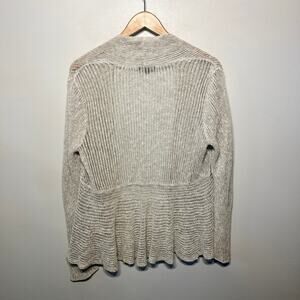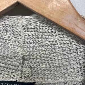 Eileen Fisher Sweater Beige Linen Open Knit Front Skirted Cardigan Boho Beachy S