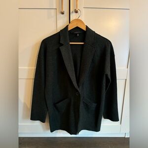 Eileen Fisher Sweater Blazer Women's Sz Medium Forest Green Italian Yarn Petite