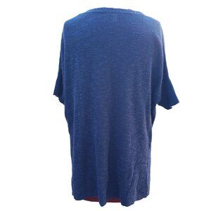 Eileen Fisher Sweater Blue Linen Knit V Neck Short Dolman Sleeve Hi Low Small