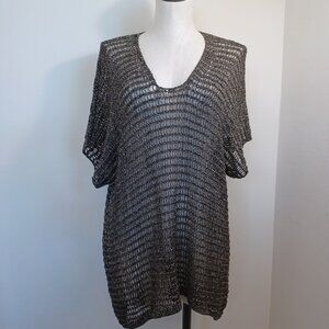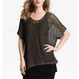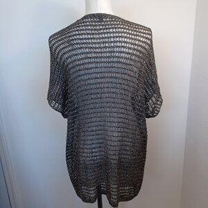 Eileen Fisher Brown Black Metallic Open Weave Sweater