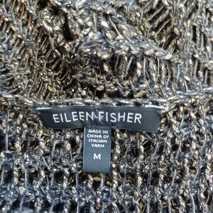 Eileen Fisher Sweater Brown Black Metallic Open Weave Linen Blend Womens Medium