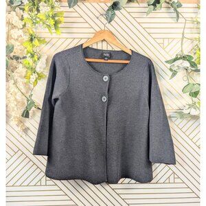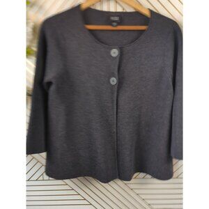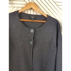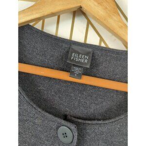 Eileen Fisher Sweater Cardigan 100% Italian Merino Wool Grey Button Down S READ