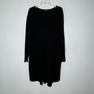 Eileen Fisher Sweater Dress Womens Black Merino Wool V Neck Pullover Tunic
