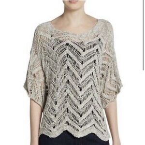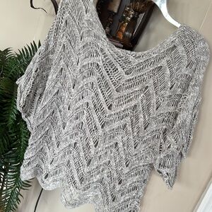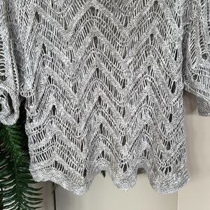 Eileen Fisher Sweater Gray Wonder Scallop Crochet Open-Weave Marled Italian Yarn.