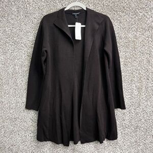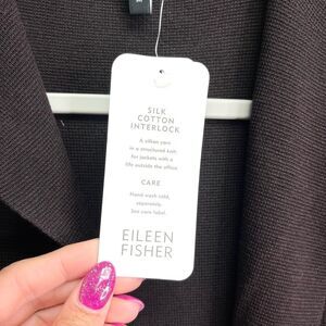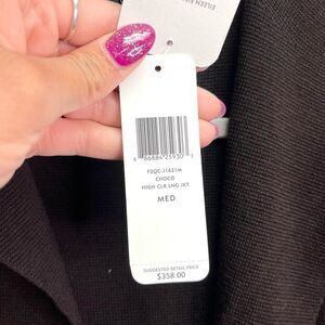 New with Tags Women’s Eileen Fisher Chocolate Brown Silk Cotton Interlock High Collar Open Front Long Cardigan Sweater Jacket in Size Medium