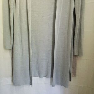 Eileen Fisher Sweater Long Light Weight Gray Cardigan Linen Blend Size L