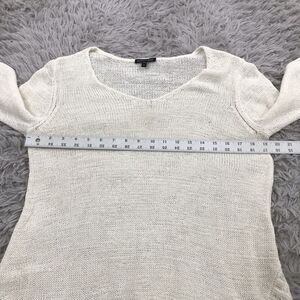 Eileen Fisher Sweater M Cotton Nylon V Neck Asymmetric Slub Knit Ivory Beach