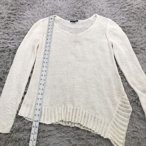 Eileen Fisher Sz M Cotton Nylon V Neck Asymmetric Hem Slub Knit Sweater Ivory