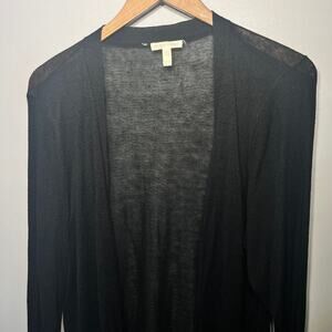 Eileen Fisher Sweater Organic Linen Blend Black Open Front Thin Knit Cardigan