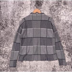 Eileen Fisher Sweater Small Womens Jacquard Knit Mock Neck Geometric Check
