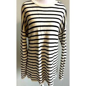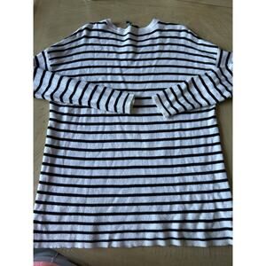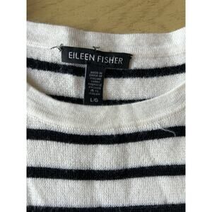 Eileen Fisher Sweater Striped Nautical Distressed Crew Neck Knit Coastal Soft L