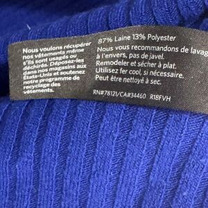 Materials: 87% wool, 13% polyester; made in China. RN 78121; CA 34460.