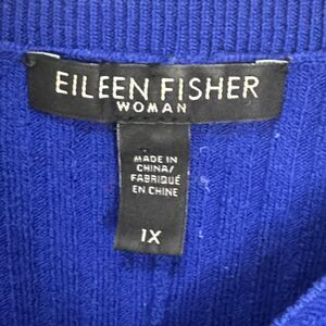 Eileen Fisher Sweater Womens 1X Blue Ribbed Knit Wool Long Sleeve Pullover