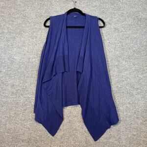 Eileen Fisher Sweater Womens 1X Blue Silk Cotton Sleeveless Cardigan Plus Size