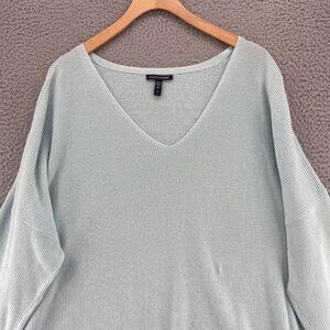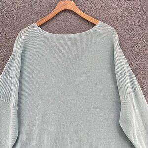 Eileen Fisher Sweater Womens 1X Plus Blue V Neck Knit Stretch Pullover Casual
