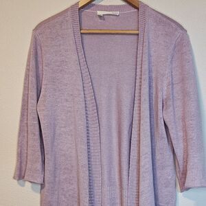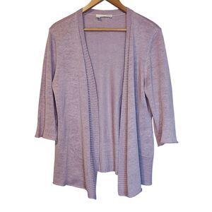 Eileen Fisher Sweater Womens Large Lilac Purple Open Front Cardigan Linen Lightweight Layer