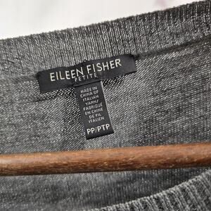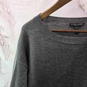 Eileen Fisher Sweater Womens Large Petite Gray Lightweight Merino Wool Crew Drop