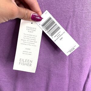 New with Tags Women’s Eileen Fisher Purple Organic Cotton Soft Funnel Neck 3/4 Bell Sleeve Poncho Knit Sweater in Size Small
