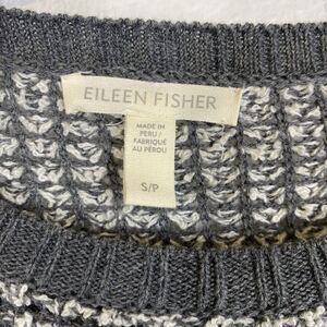 Eileen Fisher Sweater Womens Small Gray White Organic Cotton Textured Knit Pullover