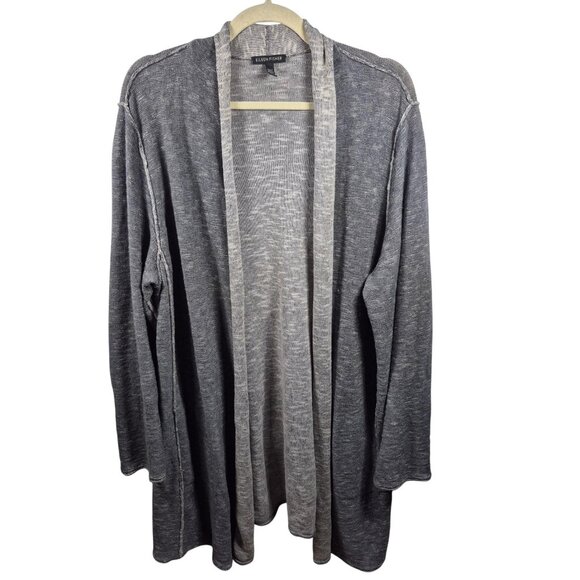 Eileen Fisher Sweater Womens XL Gray Linen Cardigan Open Long Sleeve Minimalist