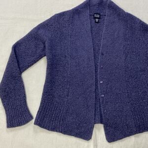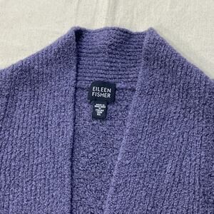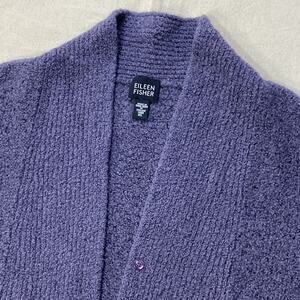 The Eileen Fisher Sweater in women's XL size is a luxurious Italian cashmere wool knit open cardigan. Featuring a solid purple color, tight-knit fabric with a stretch for comfort, and a classic long-sleeve design, this sweater is perfect for adding a touch of elegance to any outfit. The brand's reputation for quality and simplicity is evident in this stylish and versatile piece, making it a timeless addition to any woman's wardrobe.