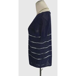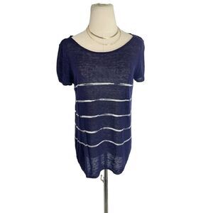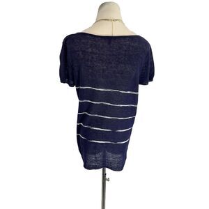 Eileen Fisher Sweater Organic Linen Size Medium Blue White Semi Sheer Knit