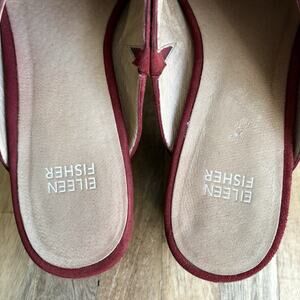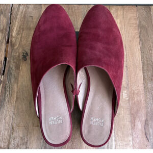 Eileen Fisher Sylvia Suede Mules Size 9 Wine Red Block Heel Slides Shoes