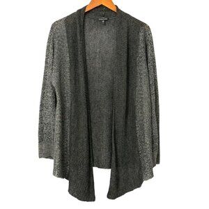 Eileen Fisher System Linen Cardigan Sweater Two-Tone Gray Open Front Soft Size L