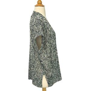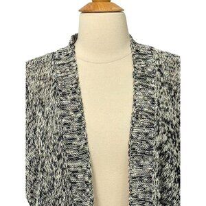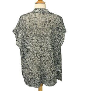 Eileen Fisher System Open Short Sleeve Cardigan Linen Blend Black White Size PS