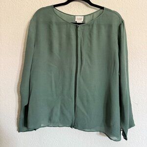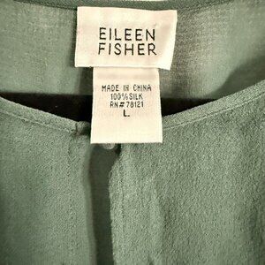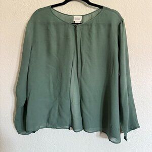 Eileen Fisher System Women's Sheer SZ Large Silk Blouse jacket Open Front Glam