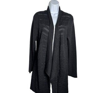 Eileen Fisher System size Large black lightweight cardigan sweater merino wool