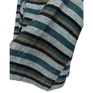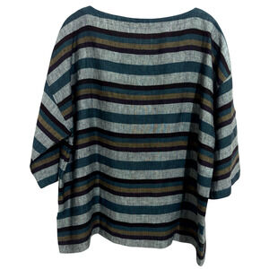Eileen Fisher Sz L Teal Multi Stripe Organic Linen Top Bateau Neck EXCELLENT