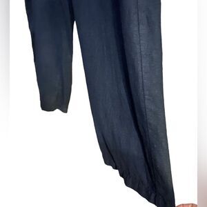 Eileen Fisher Sz M Black Linen Lightweight Ankle Office Workwear Pants