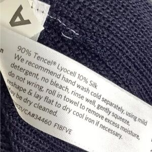 Eileen Fisher Sz M Lightweight Duster Cardigan Blue Brown Trim Tencel Silk