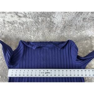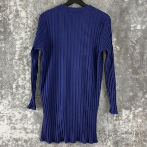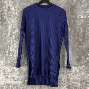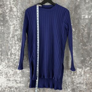 Eileen Fisher Sz M Ribbed Stretch Crew Neck Tunic Top Purple Long Sleeve Pullove