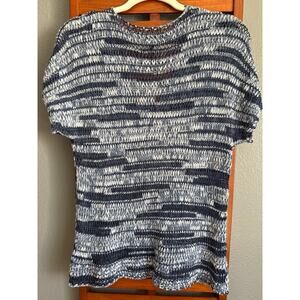 Eileen Fisher Sz MP Crochet Top Blue Short Sleeve. EUC