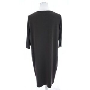 Eileen Fisher Sz S Gray Viscose Jersey V Neck Shift Tunic Dress Stretch Knit
