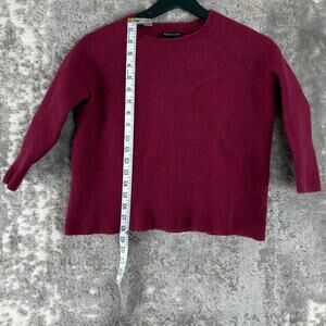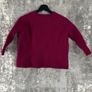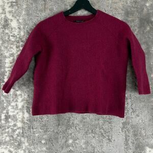 Eileen Fisher Sz S Wool Cashmere Blend Italian Yarn Sweater Burgundy 3/4 Sleeve