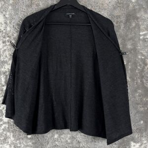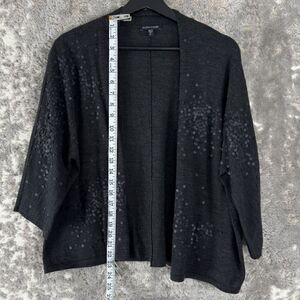 Eileen Fisher Sz XS Gray 100% Merino Wool Knit Sequin Open Cardigan Sweater 3/4