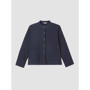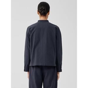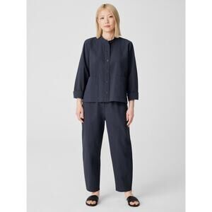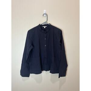 Eileen Fisher Sz XS Organic Cotton Pucker Shirt Jacket Navy Blue -GREAT! WORN 1x