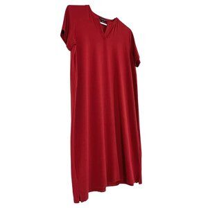 Shirt Dress Spring Summer Rust Brown Red Stretch Viscose Spandex Soft Relaxed Short Sleeve V-Neck