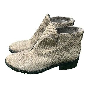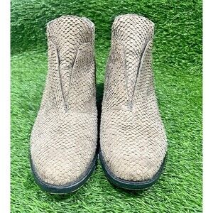 Eileen Fisher TUCK2-LT Embossed Leather Graphite Colored Booties Sz 7.5