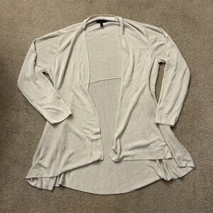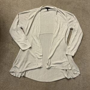 Eileen Fisher Tan Beige Minimalist Contemporary Boho Open Knit Cardigan Size L