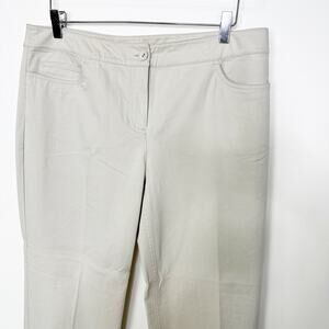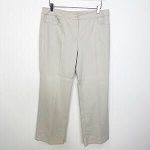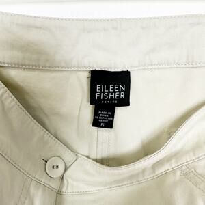 Eileen Fisher Tan Khaki Slacks Pants in women's size Petite Large. Button fly closure. Cotton/Tencel/Spandex blend. Excellent pre-owned condition.