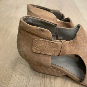 Eileen Fisher Tan suede leather open toe sandal booties