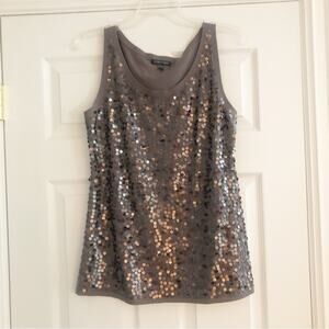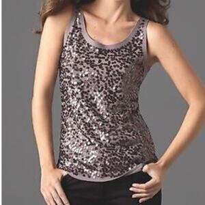 Eileen Fisher Tank Top Cami Icy Plum Sequin Wool Sleeveless Formal Evening Shirt