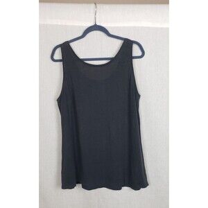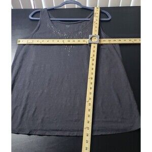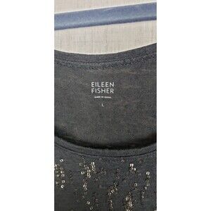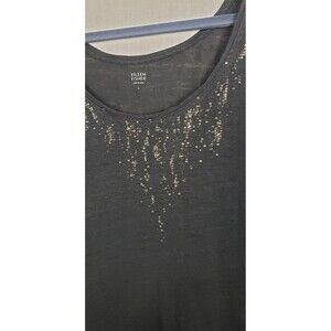 Eileen Fisher Tank Top L Gray Slub 100% Linen Beaded Party Holiday Casual