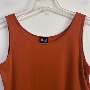 Eileen Fisher Tank Top M Pumpkin Orange Stretch Silk Sleeveless Layer Designer