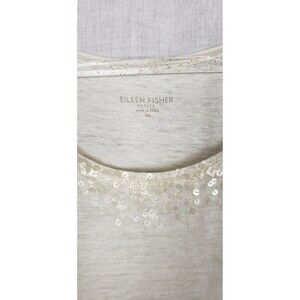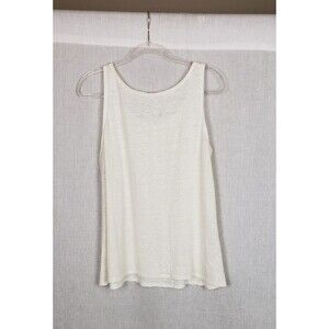 Eileen Fisher Tank Top PM Ivory White Slubbed Sequined Neck 100% Linen Vacation