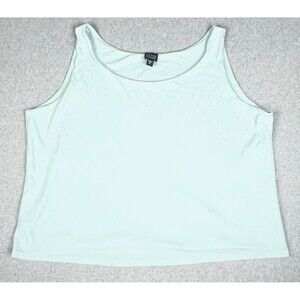 Eileen Fisher Tank Top Womens XL Blue Green Silk Sleeveless Round Neck Blouse